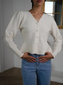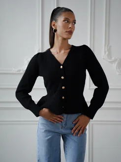 Кардиган укороченный, кофта на пуговицах вязаная