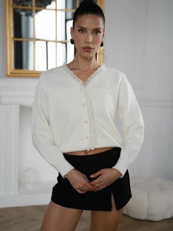 Кардиган укороченный с кружевом