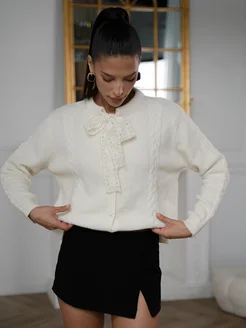 Кардиган вязанный с кружевным бантиком
