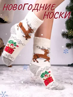 Носки женские теплые вязаные шерстяные термоноски с принтом