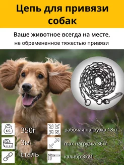 Цепь для собак привязочная, 3м, толщина звена 3х21мм