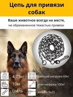 Цепь для собак привязочная 10м, толщина звена 5х25мм