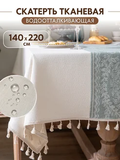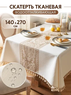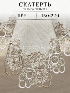 Скатерть тканевая прямоугольная 150*220 лен с кружевом