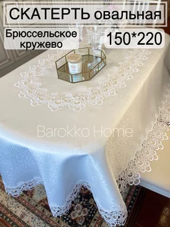 Скатерть Овальная 150*220 тканевая жаккард с кружевом