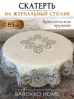 Скатерть на журнальный столик круглая с кружевом 85 см