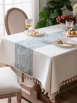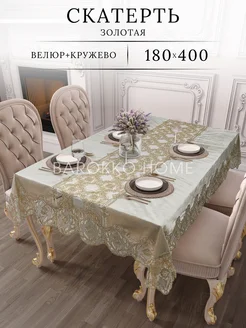 Скатерть Прямоугольная 180*400 тканевая велюр с кружевом