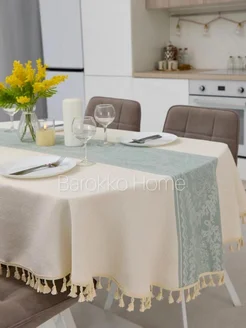 Скатерть Прямоугольная 150*300 тканевая велюр с кружевом