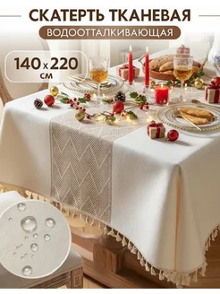 Скатерть Овальная 150*220 тканевая лен с кружевом