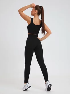 Лосины спортивные с высокой посадкой леггинсы в рубчик