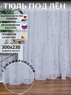 Тюль в гостиную спальню длинный под лен 300х230 готовый