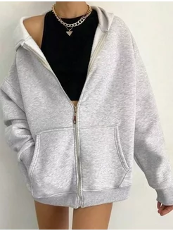 Худи оверсайз на молнии зипка с капюшоном на флисе