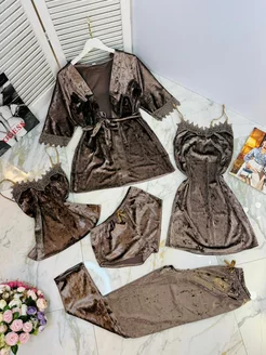 Пижама комплект 5 в 1 с шортами велюровая бархатная