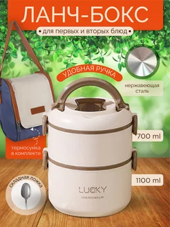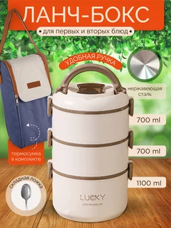 Ланч-бокс термос с тремя отделениями и термосумкой