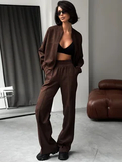 Спортивный замшевый костюм на молнии