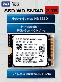 2 ТБ SSD Western Didgital SN740 M.2 2230 NVMe для Steam Deck