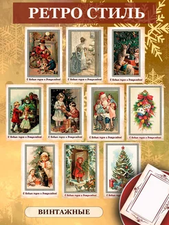Новогодние открытки ретро набор 12 шт