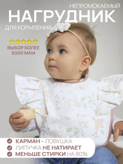 Нагрудник для кормления непромокаемый с кармашком