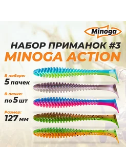 Action 5,0"(127мм) Набор #3 мягких силиконовых приманок Mino