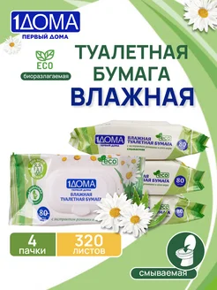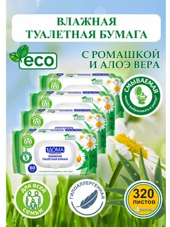 Влажная туалетная бумага Эко смываемая с клапаном 4х80 штук