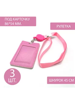 Бейдж для пропуска с ретрактором и шнурком - Розовый. 3 шт