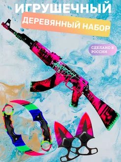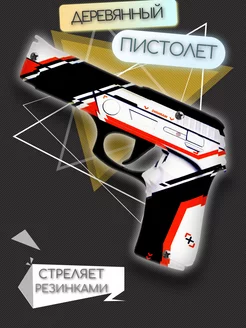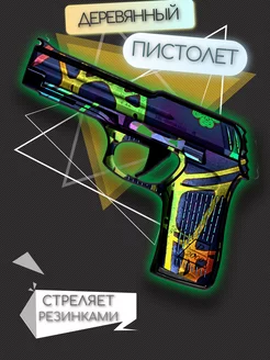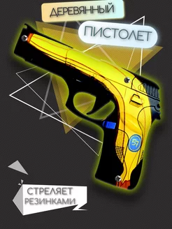 Деревянный игрушечный автомат детский пистолет резинкострел