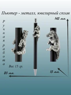 Черная ручка сувенирная с лошадьми, новогодний подарок