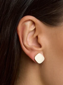 Серьги бижутерия квадратные белые гвоздики