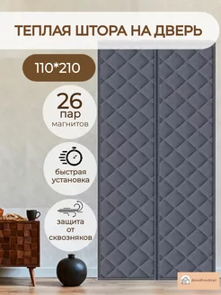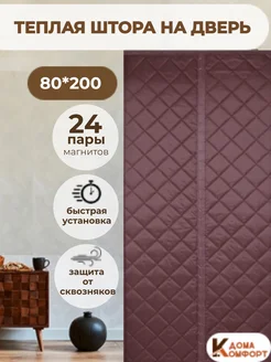 Теплая занавеска на дверь на липучке магнитах 80 200