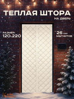 Бежевая теплая занавеска на дверь липучке магнитах 120 220