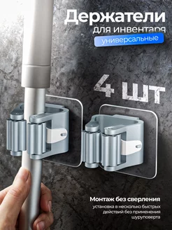 Держатель для швабры настенный самоклеящийся, 4 шт