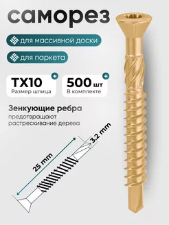 Саморез для паркета и массивной доски 3,2х25 жёлтый 500шт