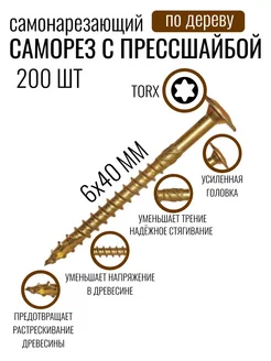 Саморез по дереву с прессшайбой 6х40 200 шт