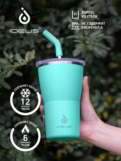 Термокружка автомобильная с трубочкой 2 крышки 414 мл