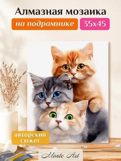 Алмазная мозаика на подрамнике большая 35х45 Три котика