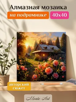 Алмазная мозаика на подрамнике 40×40 Пейзаж домика в деревне