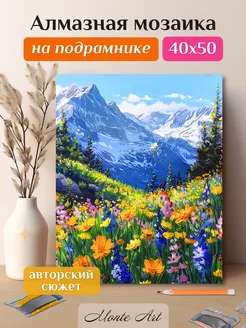 Алмазная мозаика на подрамнике 40х50 Пейзаж весны в горах