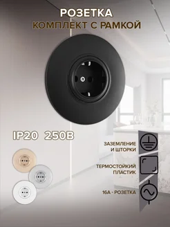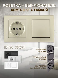Выключатель одноклавишный с розеткой с заземлением с рамкой