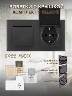 Розетка внутренняя двухпостовая с крышкой с рамкой