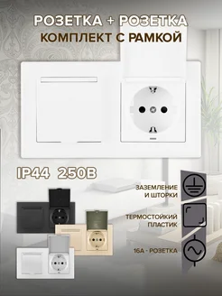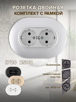 Розетка двойная в один подрозетник с заземлением и рамкой