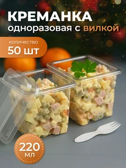 Креманка, стакан контейнер одноразовый с крышкой и вилкой