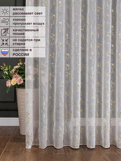 Тюль штора белая 200х260 с утяжелителем под лен в спальню