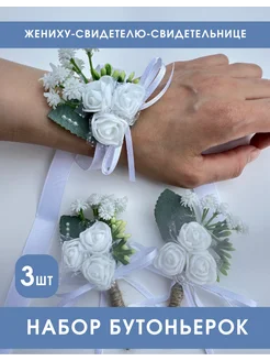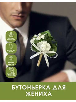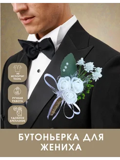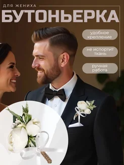 Бутоньерка свадебная для жениха белая с цветами из фоамирана