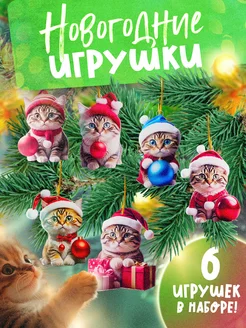 Новогоднее украшение подвеска «игрушка на елку» котики 5 шт