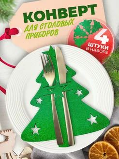 «Новогодний конверт для сервировки» столовых приборов елочки