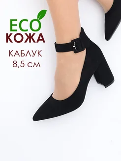 Туфли лодочки на устойчивом каблуке с ремешком лодыжке