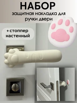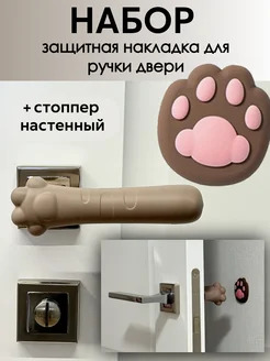 Набор защитная накладка для ручки двери и стоппер настенный