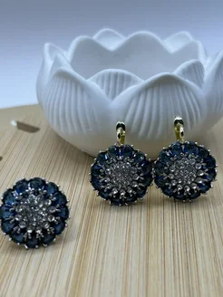 Серьги и кольцо с синим камнем