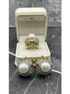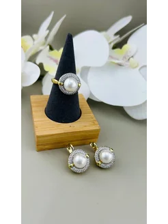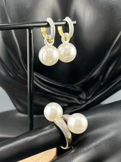 Серьги и кольцо с жемчугом бижутерия