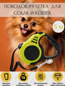 Поводок рулетка для собак и кошек мелких и средних пород 5 м