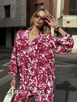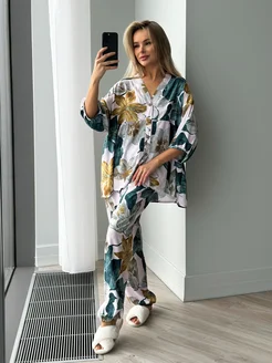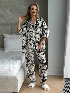 Домашний костюм со штанами и рубашкой пижама хлопок